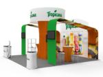 This 20×20 Trade Show Booth is the perfect portable display for a custom contemporary feel and will draw attention to your brand! Our aluminum-framed booths are manufactured to be easily transported and assembled. It comes fully loaded with custom dye sublimation graphics, offering an efficient option for advertising at any event and engaging any audience. Dye sublimation printing provides longevity with a design that won’t crack, peel or fade! The plastic hard case also converts into a fully functional podium with a printed graphic print for extra brand marketing.